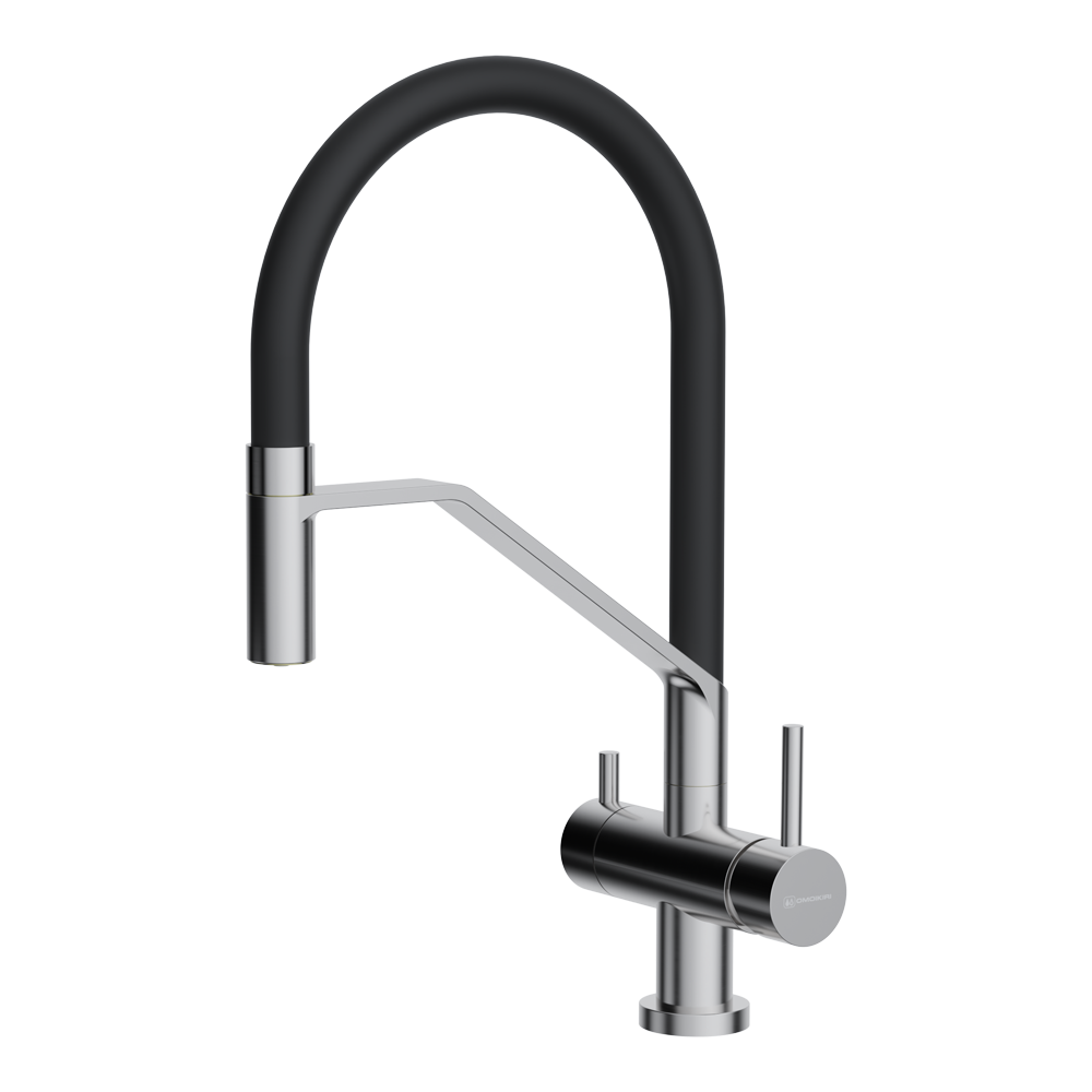 Аэратор в модели Akeno эффективно предотвращает разбрызгивание воды и способствует снижению её расхода. Высокий и гибкий излив обеспечивает максимальный комфорт: легко мыть крупную посуду, наполнять большие ёмкости и поддерживать чистоту раковины без лишних усилий.