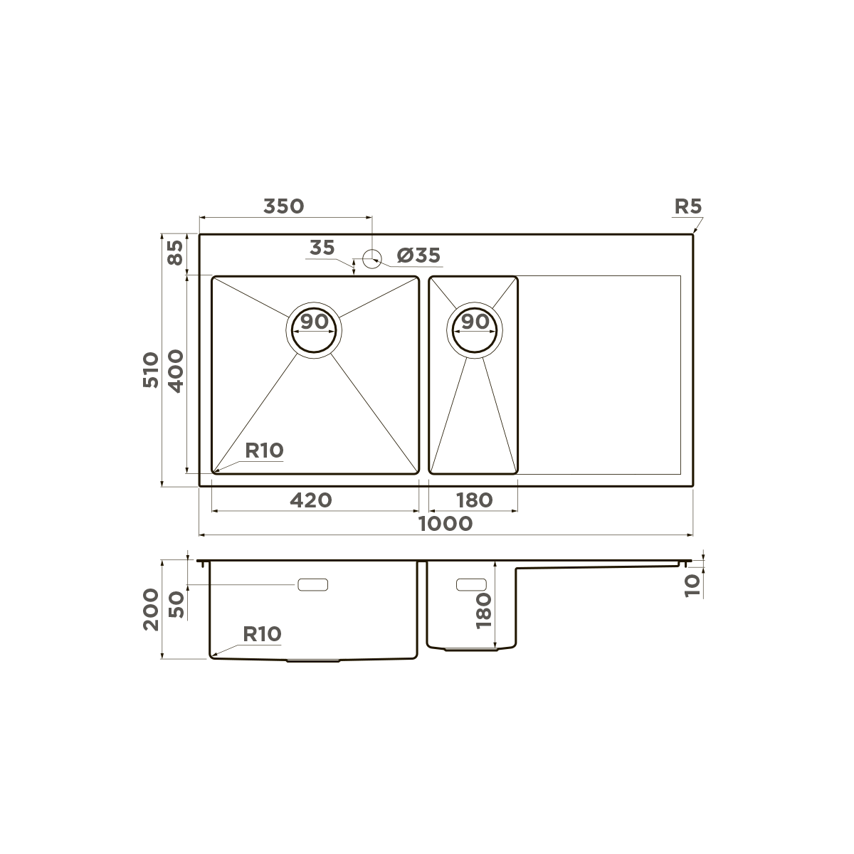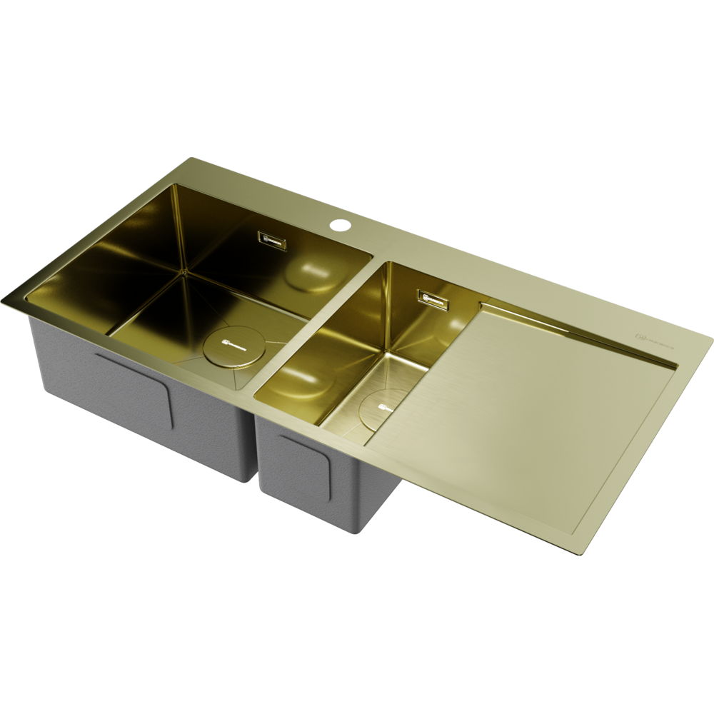 Модель Akisame 100-2-L — это полуторачашевая мойка из нержавеющей стали толщиной 1,2 мм, выполненная вручную по японским стандартам качества. Буква «L» в названии означает, что большая чаша расположена слева — идеальное решение для правшей, которым удобно мыть основную посуду под рабочей рукой, а правая зона служит для ополаскивания, разморозки или хранения овощей.
