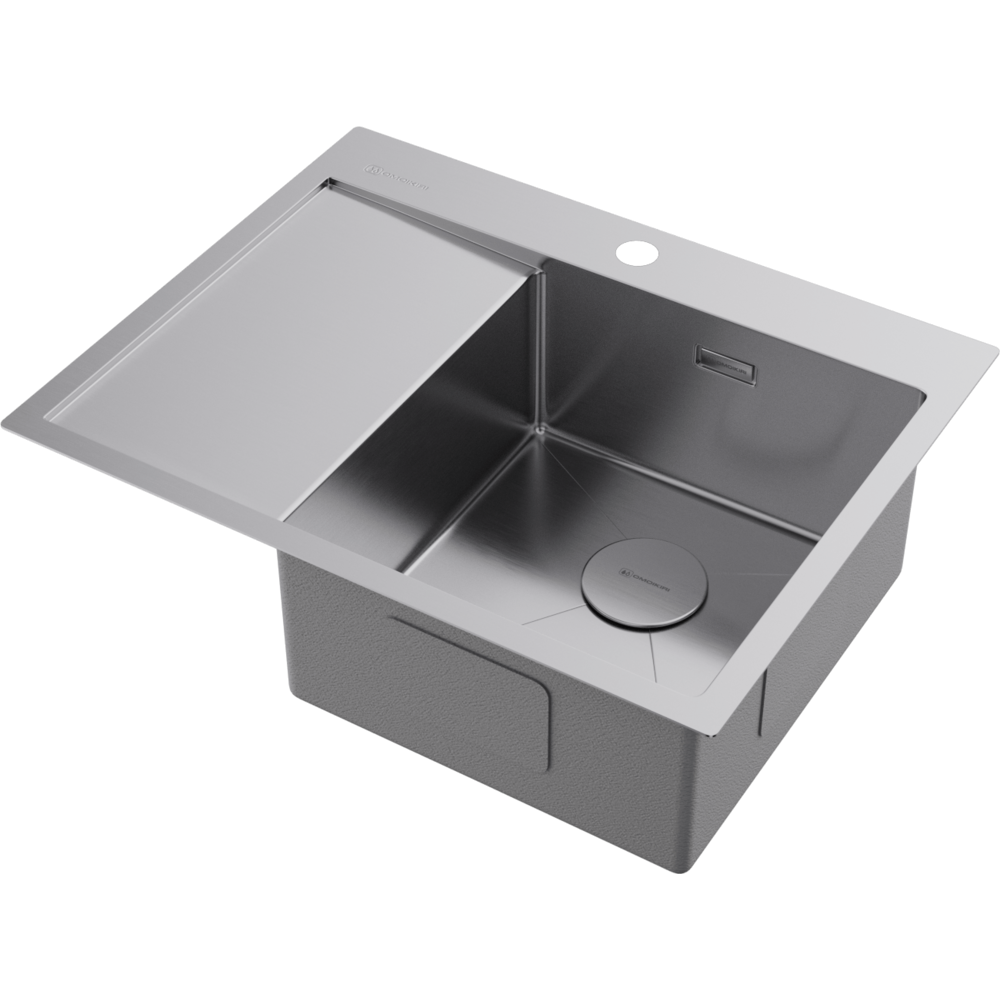 Несмотря на компактные габариты (общая ширина — 650 мм), мойка предлагает высокий уровень комфорта: глубокая чаша — 200 мм, ширина основной зоны — 360 мм, а размер выреза под врезной монтаж — 630 × 490 мм — идеально подходит для тумбы с базой 45 см.