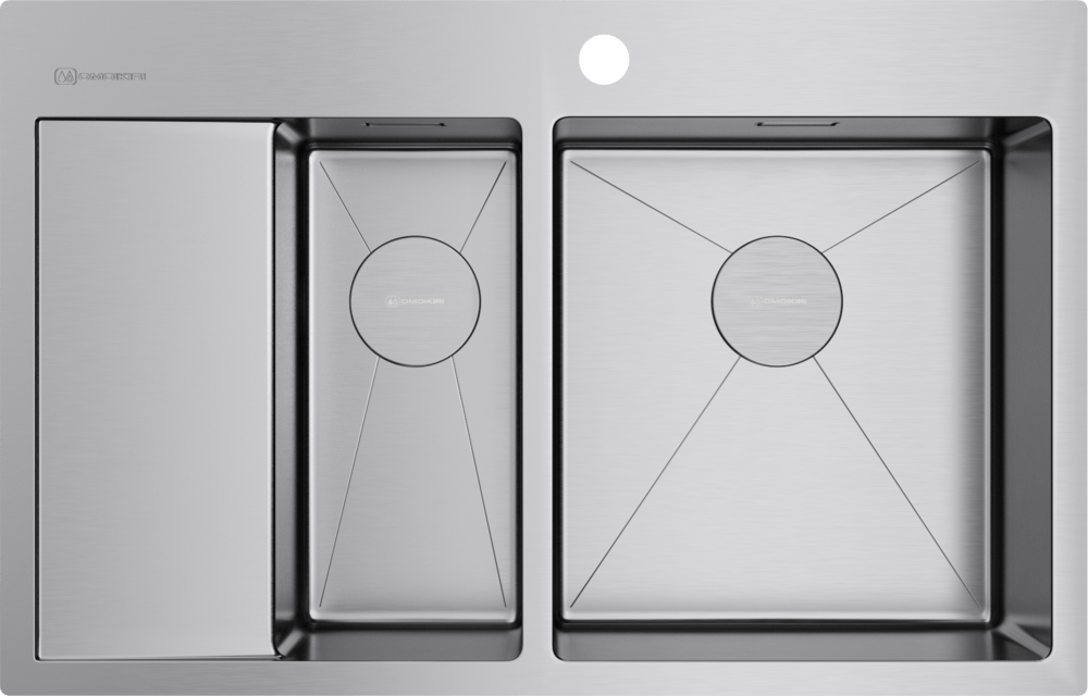 Кухонные мойки OMOIKIRI изготовлены из высококачественной хромоникелевой нержавеющей стали SUS304. Она содержит 18% хрома и 8% никеля, что обеспечивает ее максимальную защиту от коррозии. Самый важный показатель у мойки из нержавеющей стали – толщина стали, ведь чем она толще, тем более твердой, надежной и долговечной будет мойка. Для качественной мойки лучше выбирать толщину выше 0,6 мм. Мойки бренда OMOIKIRI имеют толщину от 0,7 до 1,2 мм.