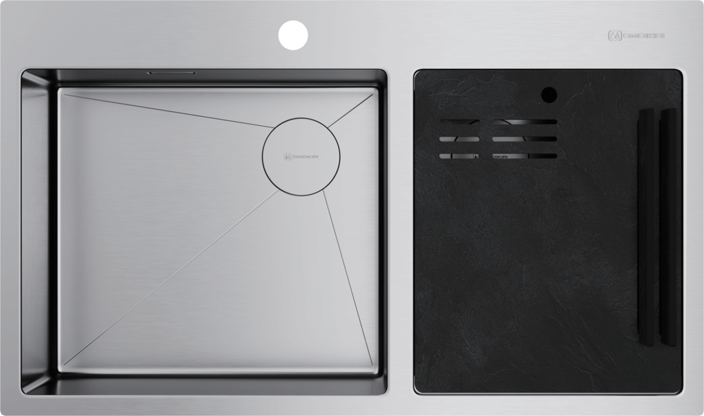 Кухонные мойки OMOIKIRI изготовлены из высококачественной хромоникелевой нержавеющей стали SUS304. Она содержит 18% хрома и 8% никеля, что обеспечивает ее максимальную защиту от коррозии. Самый важный показатель у мойки из нержавеющей стали – толщина стали, ведь чем она толще, тем более твердой, надежной и долговечной будет мойка. Для качественной мойки лучше выбирать толщину выше 0,6 мм. Мойки бренда OMOIKIRI имеют толщину от 0,7 до 1,2 мм.