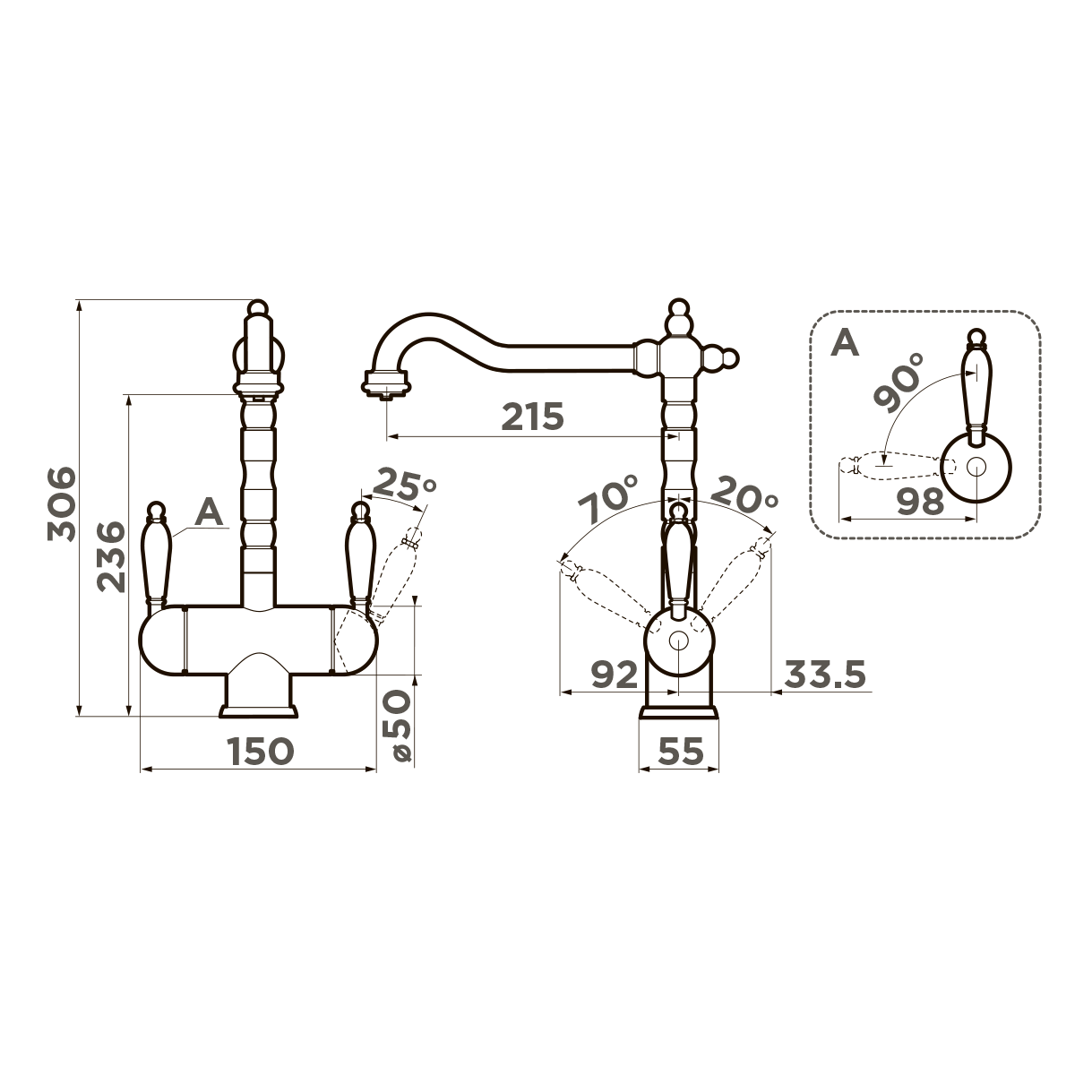 Смеситель удобен для мытья габаритной посуды и глубоких ёмкостей благодаря оптимальной длине (306 мм). Глубина изделия (215 мм) способствует равномерному распределению воды, предотвращает ее разбрызгивание. Amagasaki от Omoikiri подойдет для большинства стандартных моек за счет универсальной ширины (150 мм). Излив высотой 236 мм упрощает мытьё больших кастрюль и других крупных предметов — наклонять ёмкости больше не нужно.