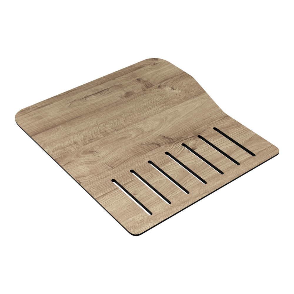 Разделочная доска CB-Maru-86 от японского бренда Omoikiri разработана как гармоничное дополнение к одноимённой мойке Maru 86. Её форма и размеры точно повторяют контуры чаши, создавая визуально цельную и функциональную зону подготовки продуктов.