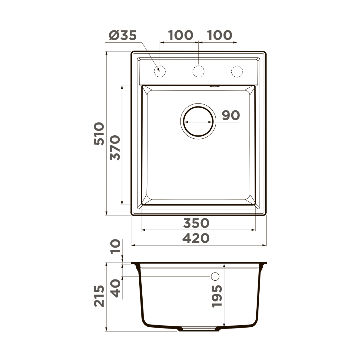 Ширина основной чаши