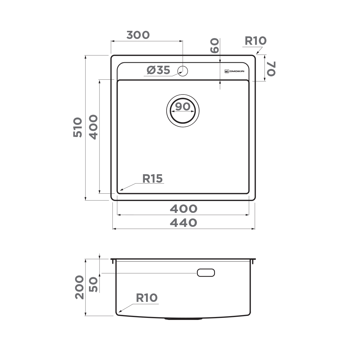 Кухонные мойки OMOIKIRI изготовлены из высококачественной хромоникелевой нержавеющей стали SUS304. Она содержит 18% хрома и 8% никеля, что обеспечивает ее максимальную защиту от коррозии. Самый важный показатель у мойки из нержавеющей стали – толщина стали, ведь чем она толще, тем более твердой, надежной и долговечной будет мойка. Для качественной мойки лучше выбирать толщину выше 0,6 мм. Мойки бренда OMOIKIRI имеют толщину от 0,7 до 1,2 мм.