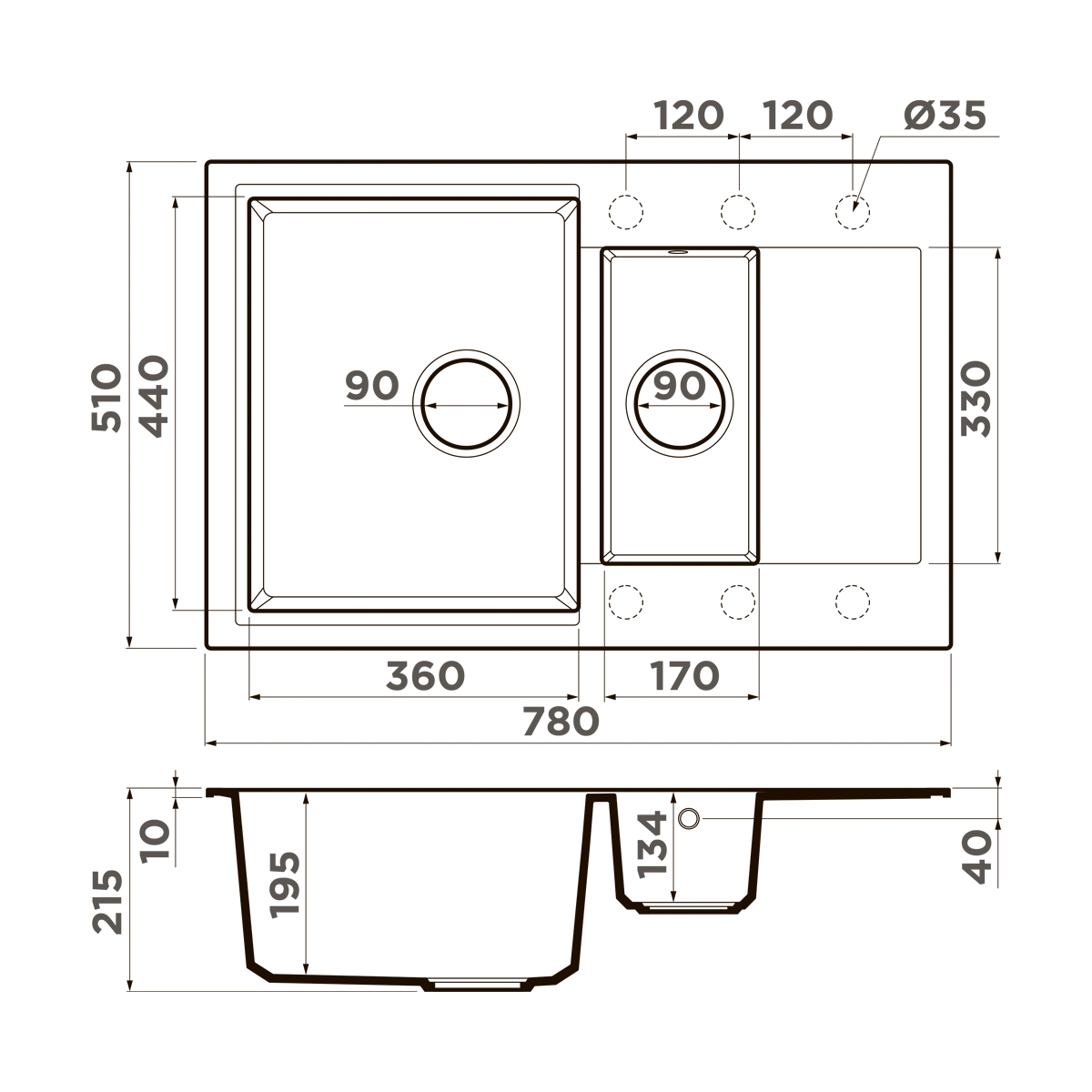 • Мойка для кухни Omoikiri Akisame 78-2-L - вороненая сталь
