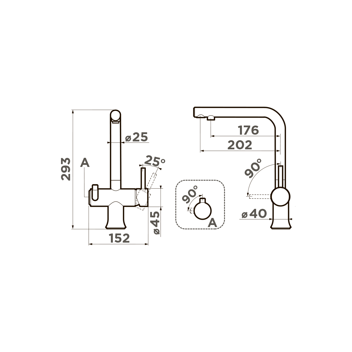 Благодаря компактным размерам (293×202×152 мм — Д×Г×Ш), модель подойдет для любой кухни. Высота излива (400, 265 мм) идеальна для того, чтобы и посуду помыть, и большую кастрюлю наполнить.