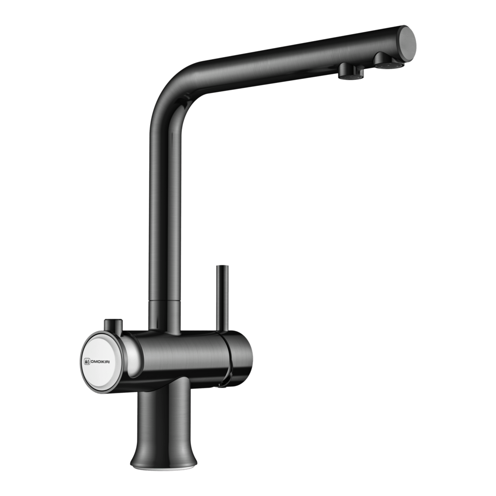 Смеситель HOTARU — вороненая сталь / белый от Omoikiri – это изумительное решение для кухни. Интересный дизайн изделия от известного японского бренда дополняется оригинальными решениями – нетривиальным способом подачи воды и сочетанием латуни с керамикой.