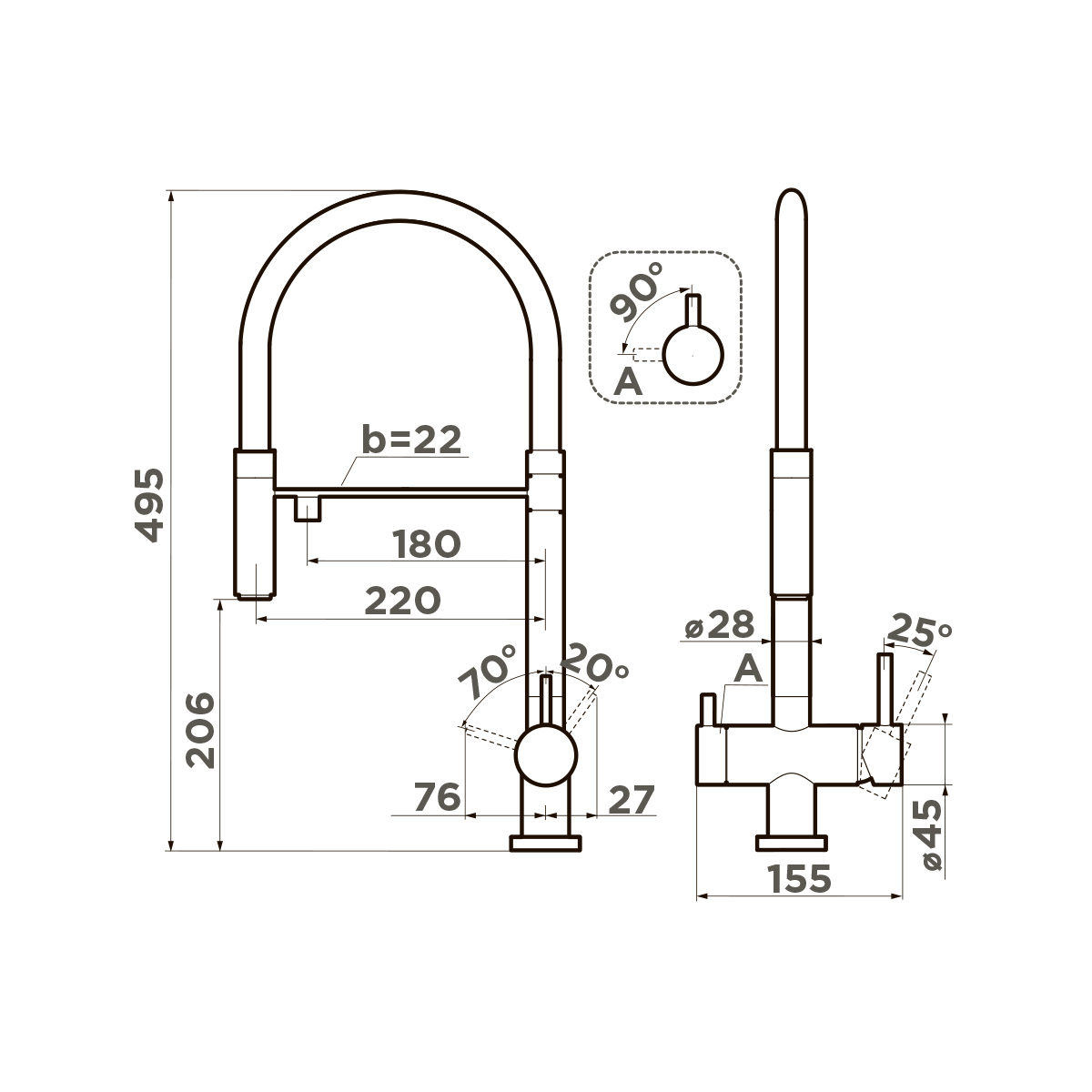 • Смеситель для кухни Omoikiri Sinto 2 Plus - нерж. сталь