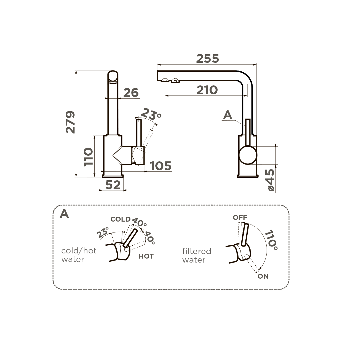 Технология 2 в 1 Multi дает возможность переключать воду с водопроводной на фильтрованную и обратно буквально одним движением руки. С помощью наклона рычага подачи воды под разным углом можно управлять горячей, холодной и питьевой водой.