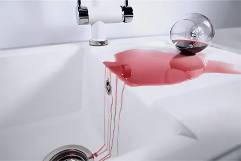 • Не оставляйте грязную посуду, кофейную гущу, чайные пакетики или другие сильные окрашивающие вещества на поверхности мойки надолго;