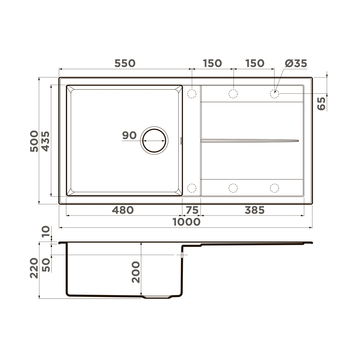 Равномерный состав материала обеспечивает устойчивость к ударам, поэтому в мойках из Artceramic нет уязвимых мест, которые больше других подвержены механическим повреждениям.