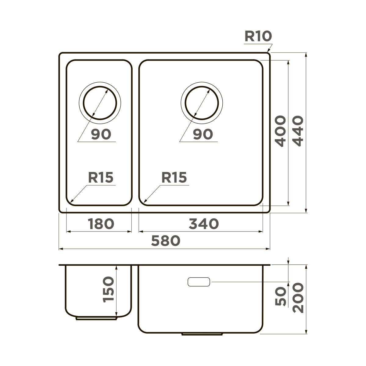 Модель Tadzava 58-2-U/I-R Ultra 15 — это полуторачашевая мойка из нержавеющей стали, разработанная для тех, кто ценит эргономику и функциональность. Буква «R» в названии указывает на то, что основная (большая) чаша расположена справа, а меньшая — слева, что особенно удобно для правшей: основная зона мытья под рабочей рукой, а левая чаша идеально подходит для ополаскивания, разморозки или хранения овощей.