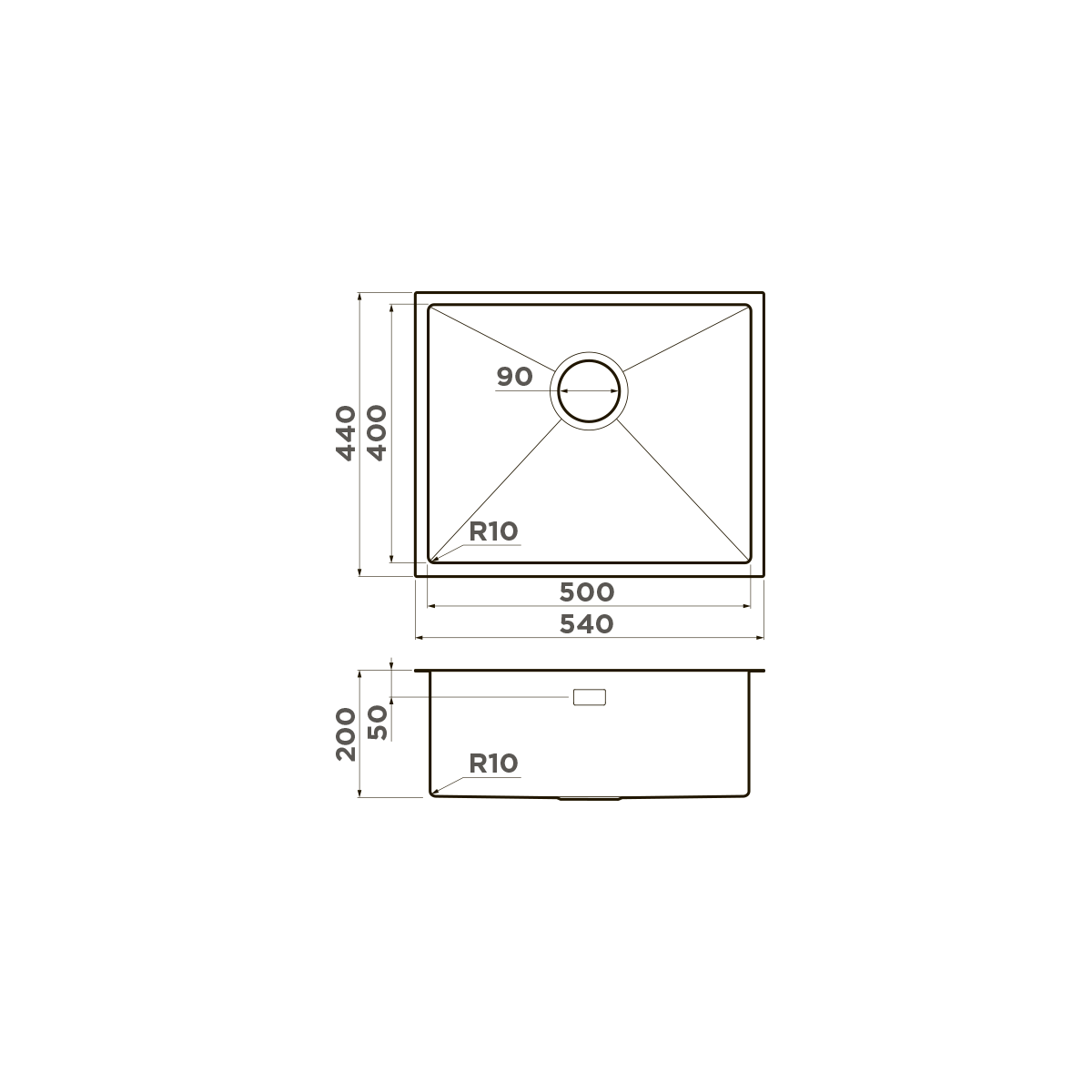 Компактные габариты (54 см в ширину) идеально подходят для небольших и средних кухонь, а глубокая чаша обеспечивает комфорт при мытье посуды и надёжную защиту от брызг.