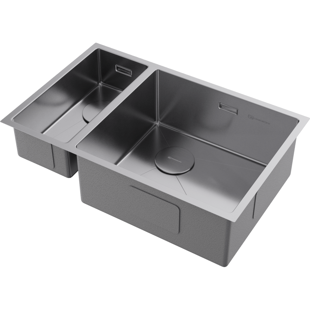 С общей шириной 750 мм и глубиной чаш 200 мм, эта мойка идеально подходит для больших и функциональных кухонь. Основная (правая) чаша размером 450 × 400 мм легко вмещает крупную посуду, противни и кастрюли, а левая — удобна для ополаскивания, разморозки или временного хранения продуктов.