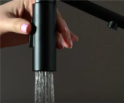 Безусловным плюсом кнопки переключения потока воды со струи на душ является отсутствие брызг в процессе использования смесителя. Вода при таком типе подачи охватывает большую площадь, тем самым делая процесс мытья посуды или ингредиентов для блюд в разы быстрее и гигиеничнее.