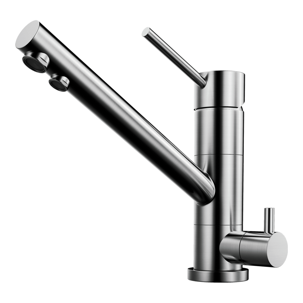 Есть у Tonami и важная особенность: это модель «2 в 1». В её конструкции предусмотрен отдельный канал и ручка для фильтрованной воды. Чистая питьевая вода поступает из того же смесителя — достаточно одного движения. Это особенно удобно, когда готовите суп или чай и хотите использовать именно очищенную воду. При этом основной поток остаётся независимым — вы не теряете ни в функциональности, ни в комфорте.