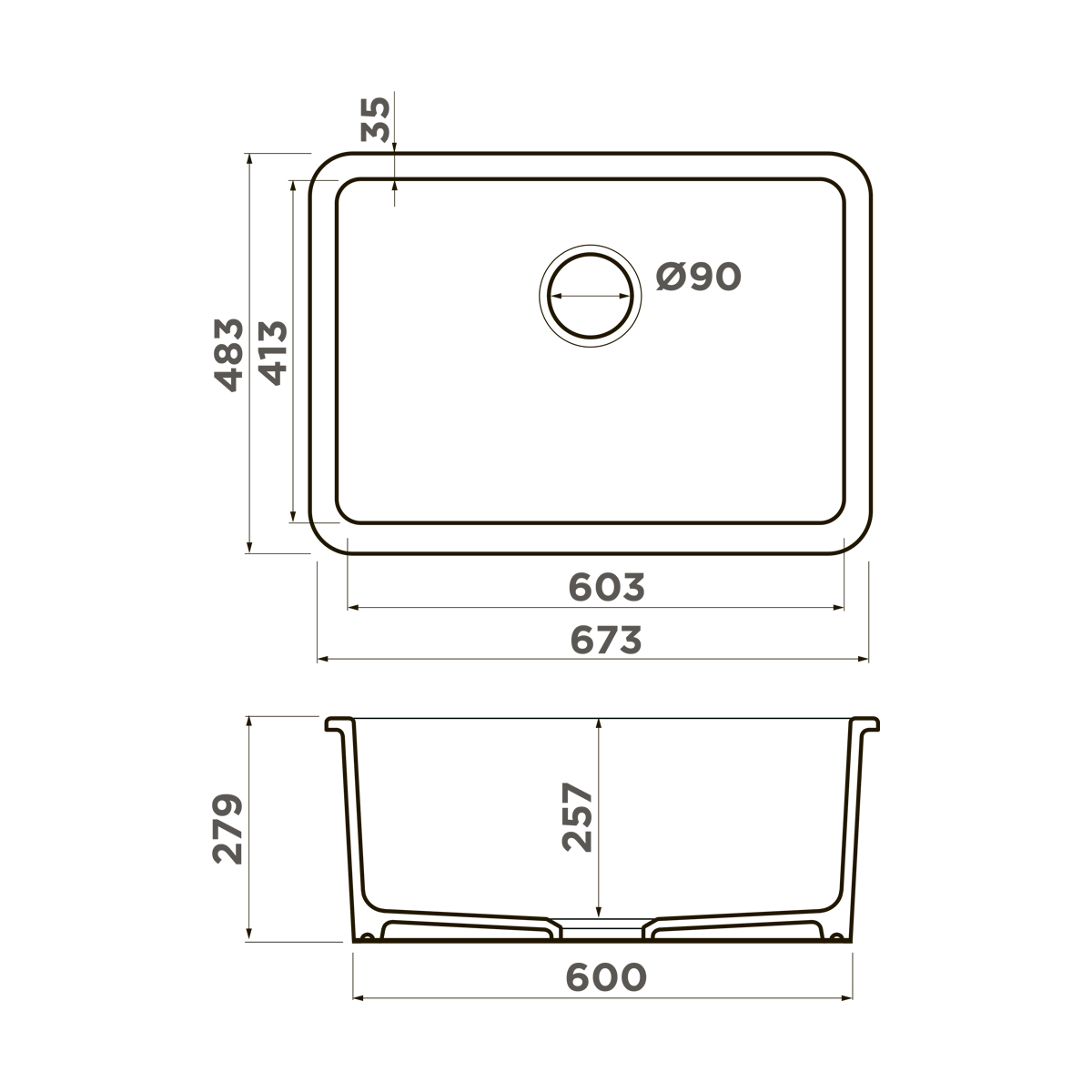 Буква «U» в названии указывает на возможность подстольной установки, а конструкция мойки продумана так, чтобы один и тот же корпус одинаково надёжно служил при любом способе монтажа.