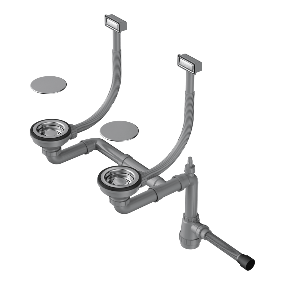 Сливная арматура для двухчашевой мойки WK-2C — нержавеющая сталь с декоративными накладками в комплекте