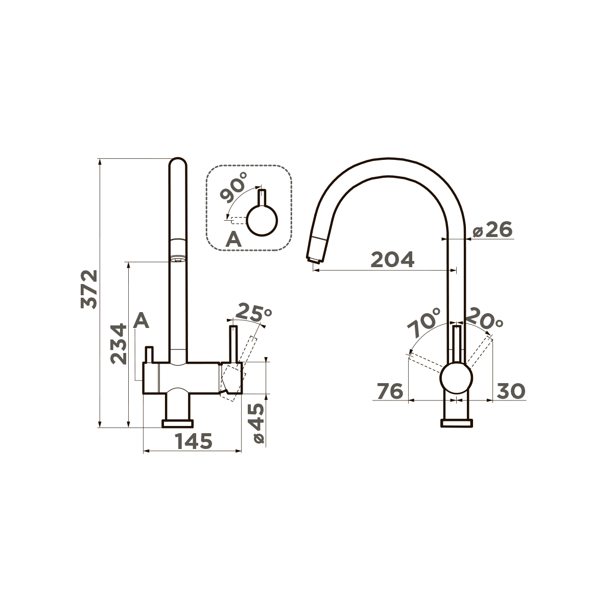 — Излив привлекает внимание изящной изогнутой формой. Но красота здесь не ради красоты: он поворачивается на 360 градусов, что делает смеситель по‑настоящему удобным в быту.
