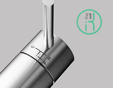 Технология 2 в 1 Multi дает возможность переключать воду с водопроводной на фильтрованную и обратно буквально одним движением руки. С помощью наклона рычага подачи воды под разным углом можно управлять горячей, холодной и питьевой водой.
