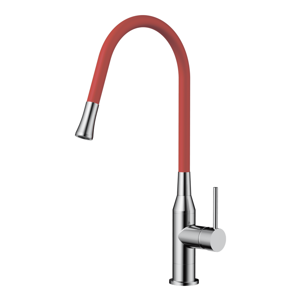 Смеситель для кухни с гибким изливом Omoikiri Yatomi — нержавеющая сталь / красный